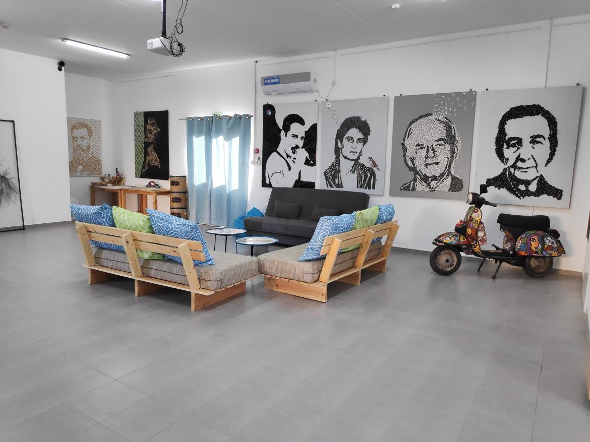 The Art Gallery displays varied unconventional artworks: Ben-Gurion made from irrigation pipes, a huge mandala from vegetables, a curtain from pipes, Yitzhak Rabin, Golda Meir, Herzl, Arik and other famous figures.