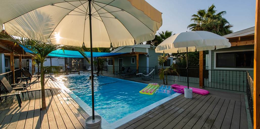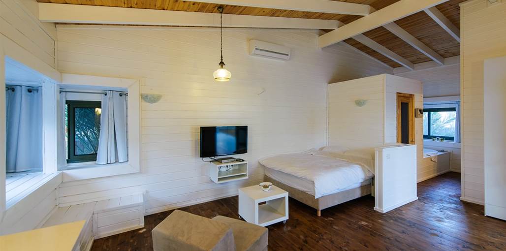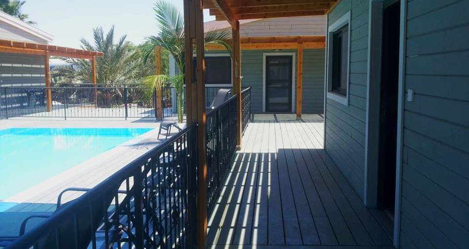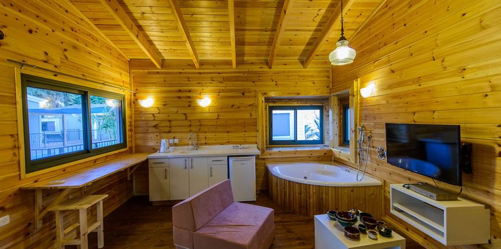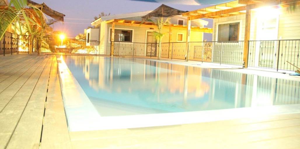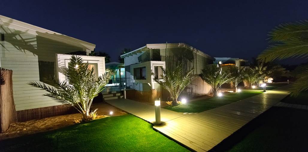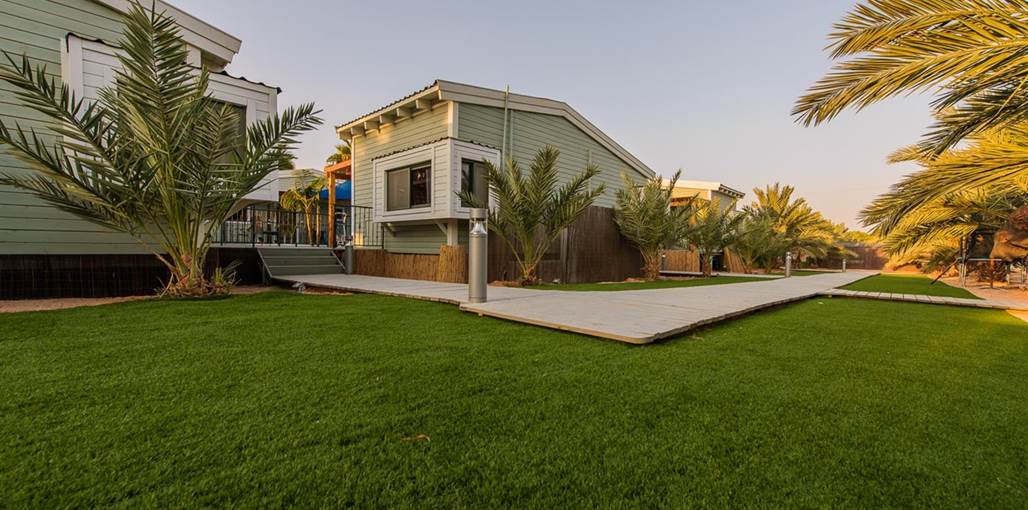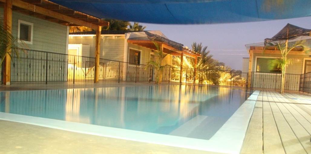 The complex offers five fully equipped wooden chalets designed to provide perfect desert hospitality. All cabins have direct access to a communal 'courtyard' garden with a large private swimming pool (4X13) for guests' enjoyment, alongside a relaxing seating area, sunbeds and a hot tub, perfect for a refreshing dip, surrounded by a beautiful desert backdrop.