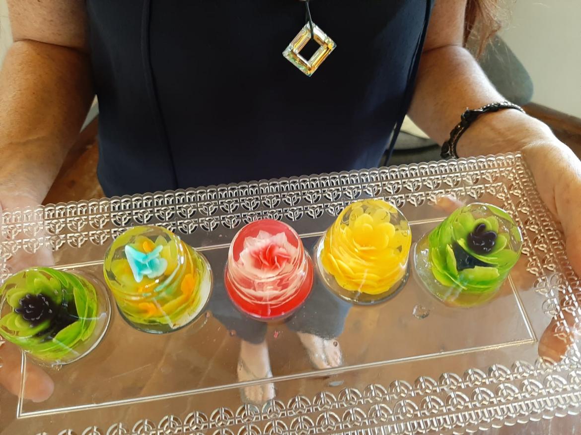 The duration of the workshop is approximately an hour and a half, during which you can learn different techniques, try to create your own desserts, and enjoy tasting spectacular and delicious jelly desserts alongside light refreshments and hot drinks, served throughout the workshop.