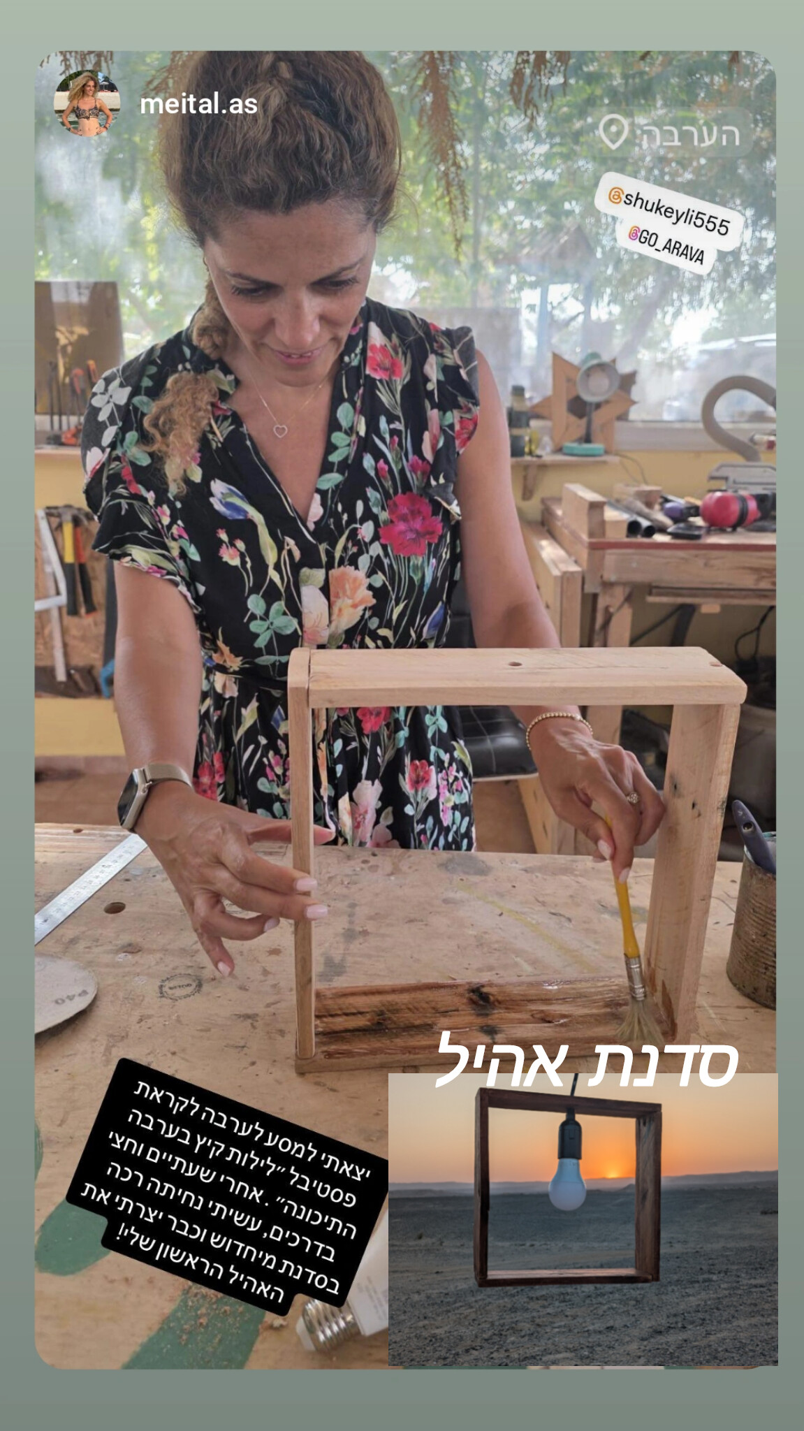 The studio, located in the Make Arava complex (near Vidor Visitor Center) offers a variety of renovation/carpentry workshops, suitable for families, individuals and groups (up to 8 people) from the age of 8 and no prior knowledge is required.