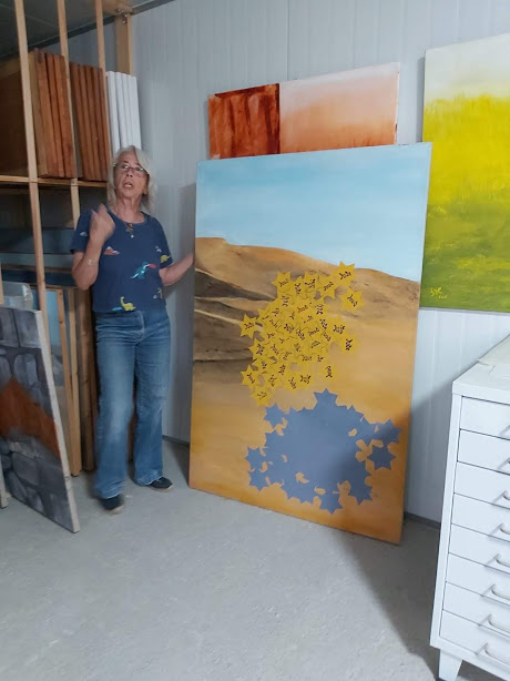 Shoshana hosts guests in her unusual home and studio, where she paints in oil paints, watercolors and techniques mixed with natural materials from the Arava desert.